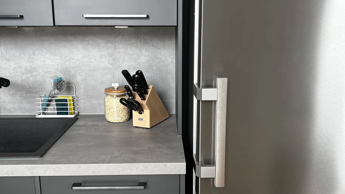 Die schwarzen Griffe verbinden modernes, minimalistisches Design mit praktischer Alltagstauglichkeit und bieten eine stilvolle Alternative, die der ursprünglichen Wunschvorstellung einer grifflosen Küche nahekommt.