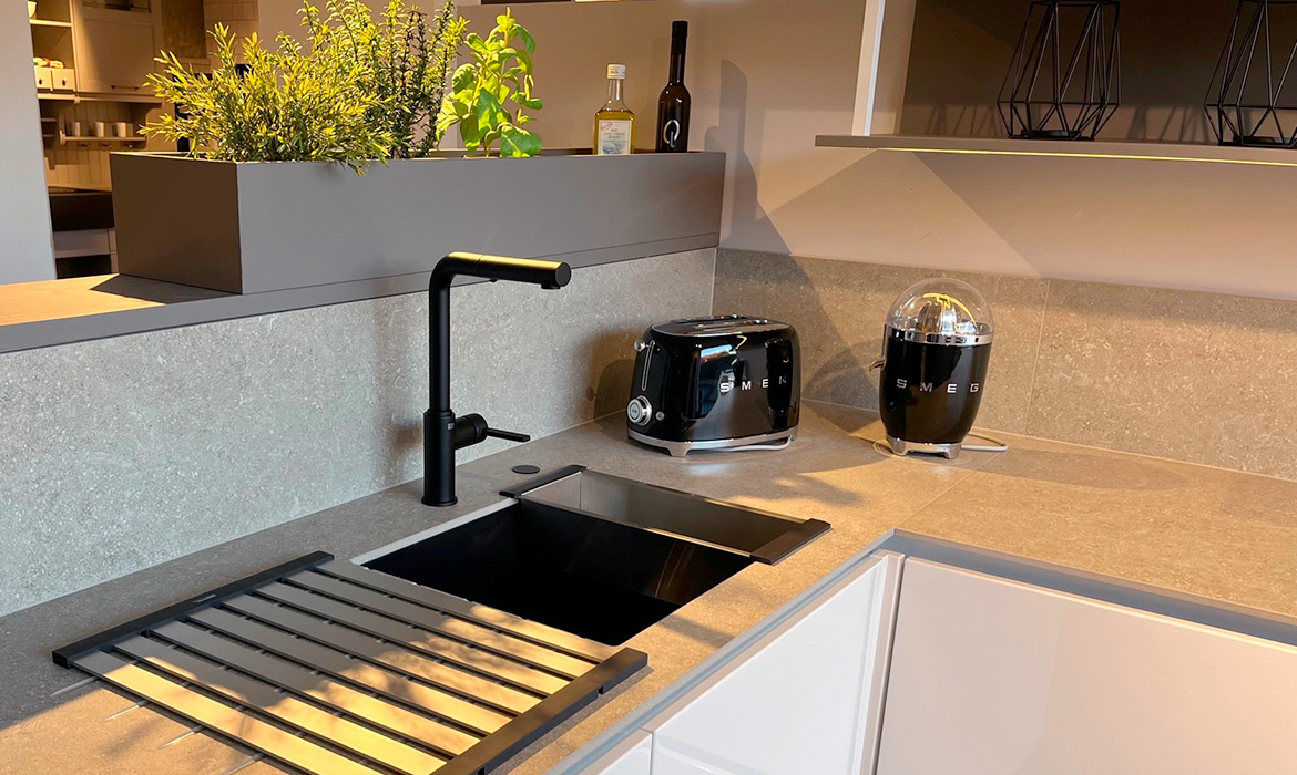 Armatur Franke Atlas Neo 1150550427 und Spüle Systemcerm Mera 50 U Nigra matt