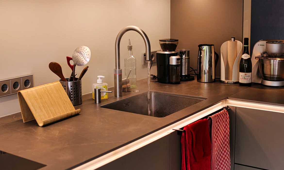 Der multifunktionale Wasserhahn, der 100 °C heißes, gekühltes, sprudelndes und stilles Wasser auf Knopfdruck liefert – echter Luxus für den Alltag.