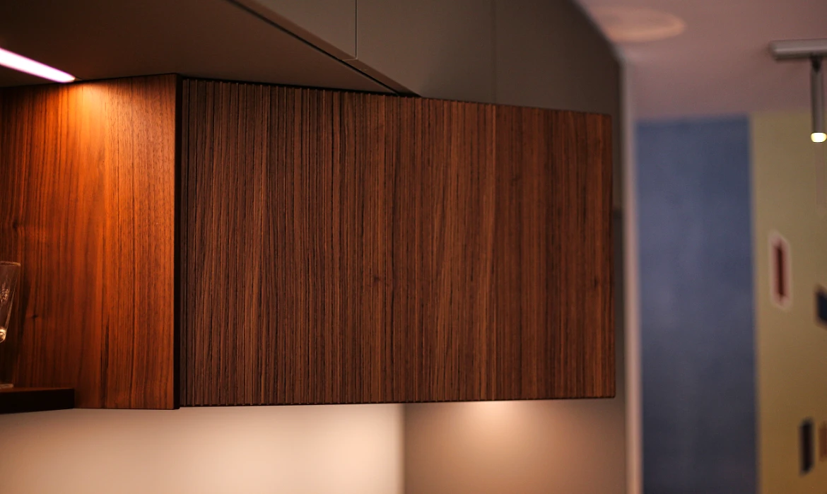 Mit einer eleganten Schattenfuge, die den Raum optisch streckt und ein modernes, durchgehendes Design schafft.